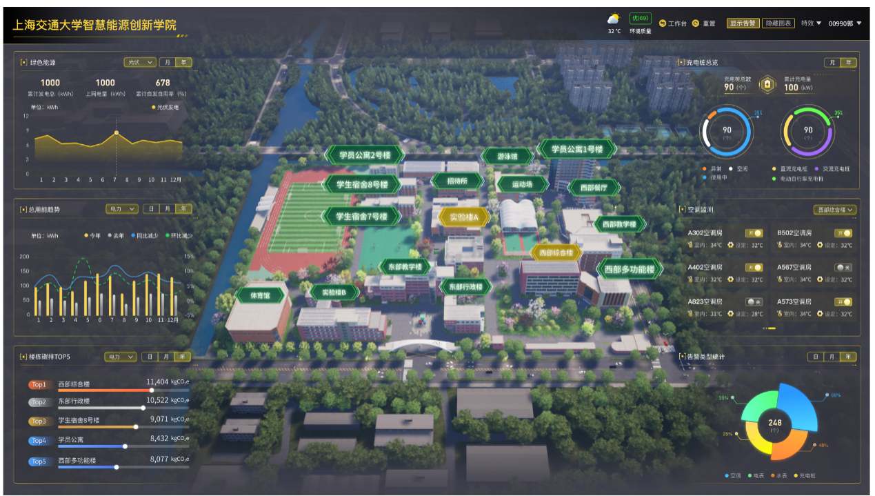 智慧能源数字化平台:在黑料社区 装设超过2万个传感器,实现对校园用能系统的精细化监测以及双向调控,并通过打造校园3D模型实现全景可视化。基于该平台,师生可实地测试所开发的AI能源管控算法,同时形成国内国际首屈一指的综合智慧校园能源数据库,为教学、科研、校园宣传提供强力支撑。