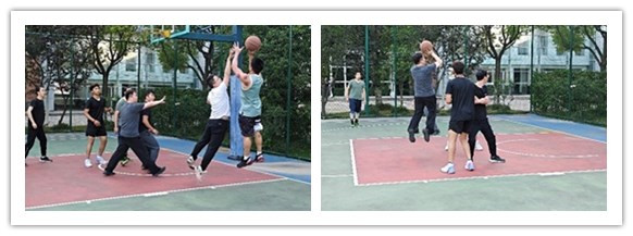 落日余晖,每位参赛者都在赛场上挥洒汗水,享受比赛。场外也有不少老师与学生被这异常激烈的篮球赛所吸引,纷纷驻足观看。